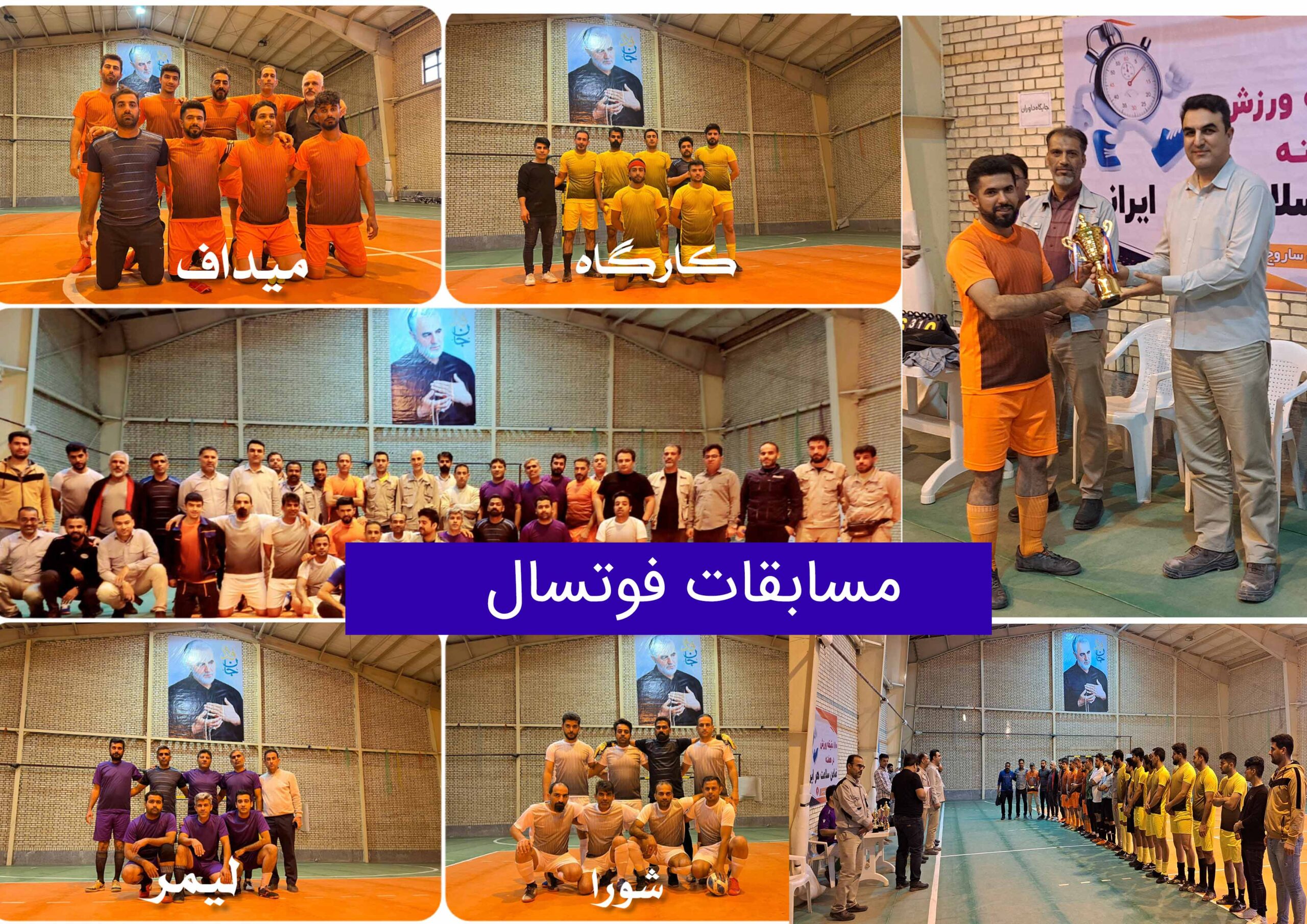 بازی پایانی فوتسال و مراسم اختتامیه در مورخه ۱۸ بهمن ماه با حضور آقای مهندس محمودی مدیر کارخانه و تعدادی از مدیران میانی و کارکنان شرکت برگزار و در پایان به تیم ها و نفرات برتر مسابقات جوایزی به رسم یادبود اهداء گردید.