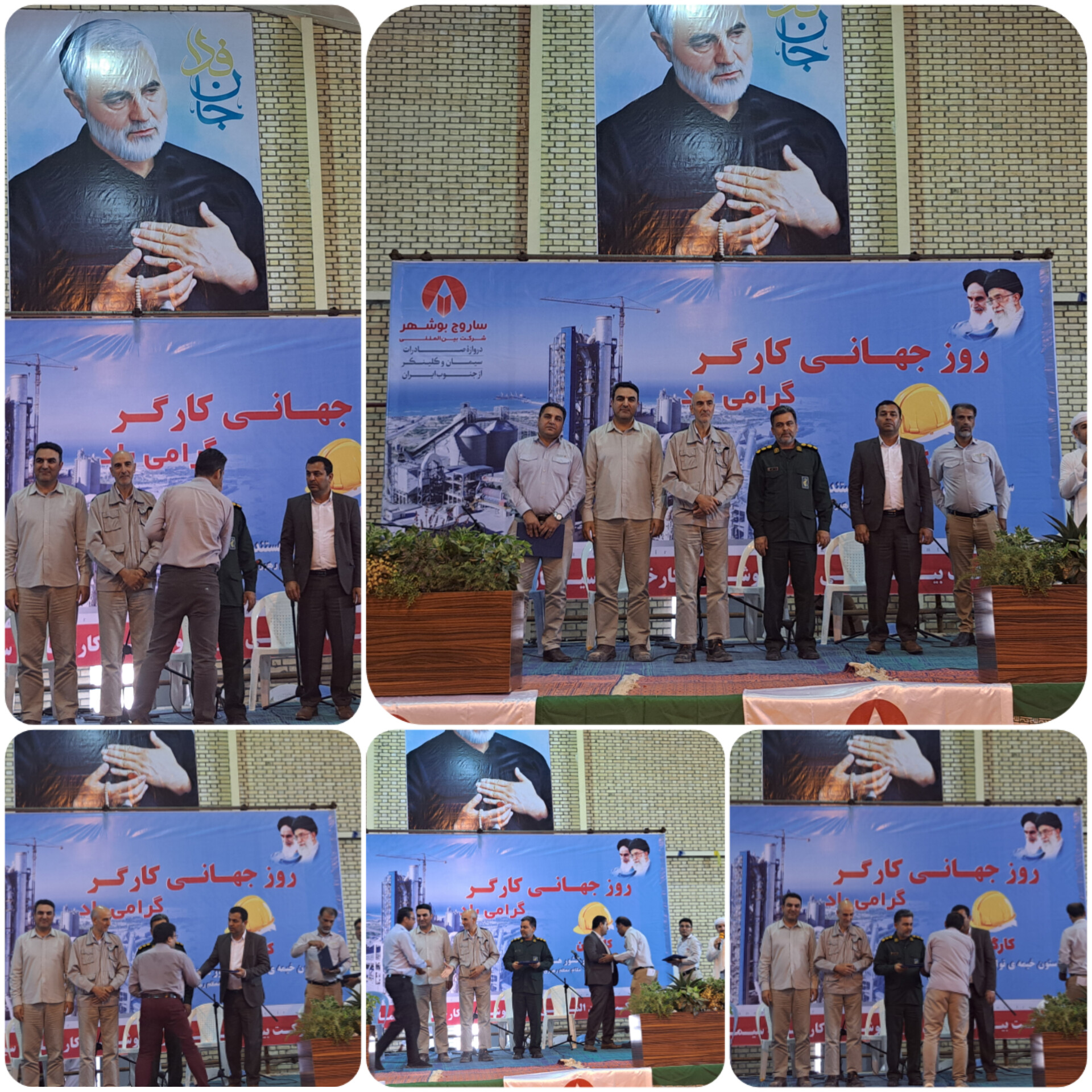 به گزارش روابط عمومی شرکت بین المللی ساروج بوشهر به مناسبت هفته کار و کارگر و به جهت ارج نهادن به زحمات کارکنان شرکت طی مراسمی با حضور فرمانده بسیج شرکت ها و ادارات کنگان ، رئیس اداره تعاون، کار و رفاه اجتماعی کنگان ، مدیر عامل شرکت بین المللی ساروج بوشهر، مدیر کارخانه سیمان کنگان، اعضای شورای اسلامی کار، مدیران و کارکنان کارخانه سیمان کنگان و پیمانکاران تابعه از ۲۷ نفر از کارگران نمونه و شایسته تقدیر شرکت تجلیل شد.