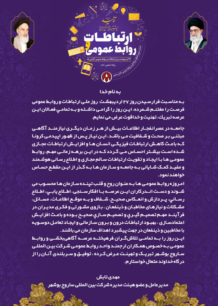 برای پیام تبریک مدیر محترم عامل به مناسبت روز ارتباطات و روابط عمومی