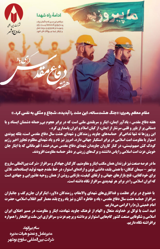 پیام مدیر عامل شرکت بین المللی ساروج بوشهر به مناسبت هفته دفاع مقدس