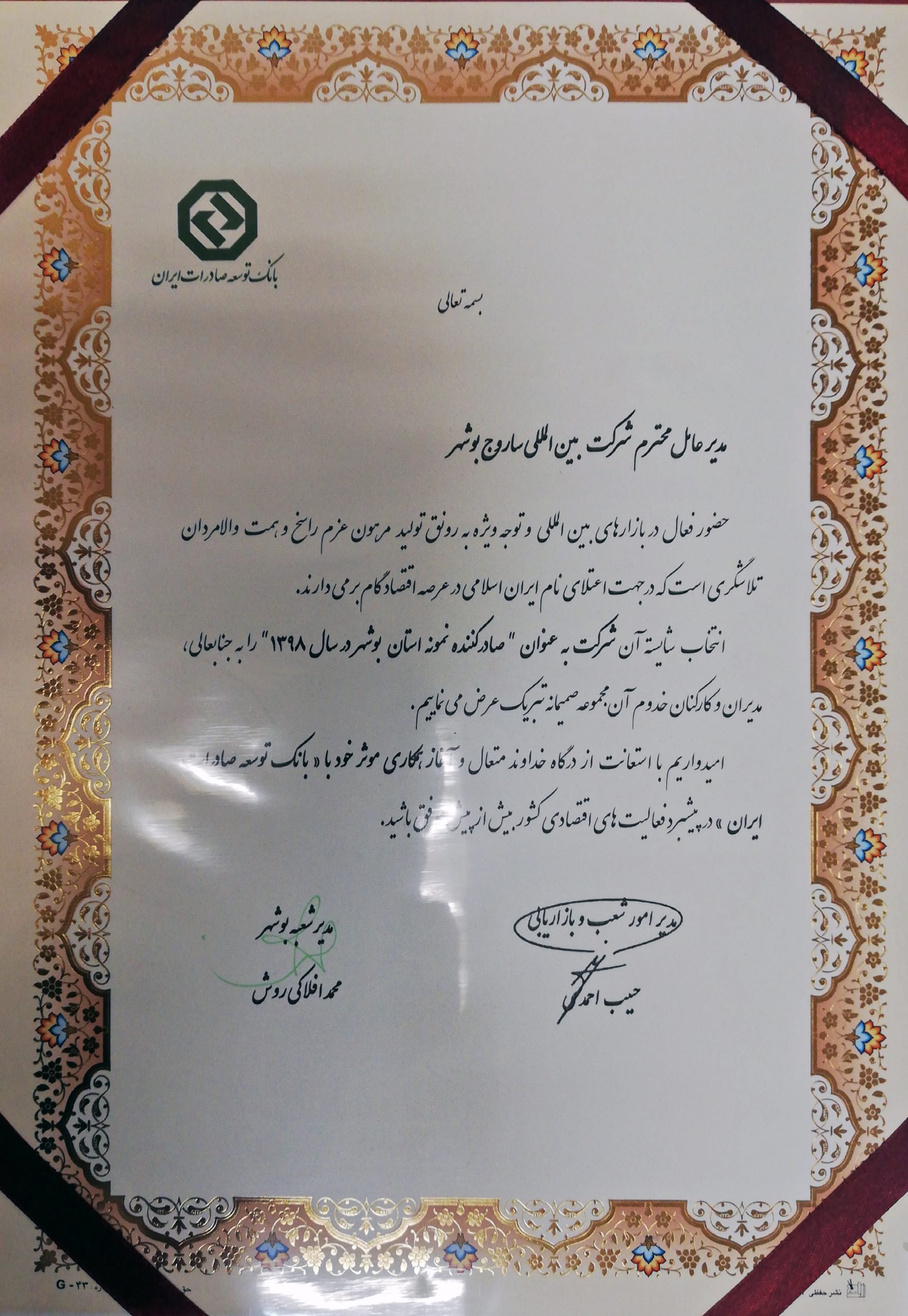 این شرکت در سال گذشته به عنوان صادرکننده نمونه ملی معرفی شده بود.