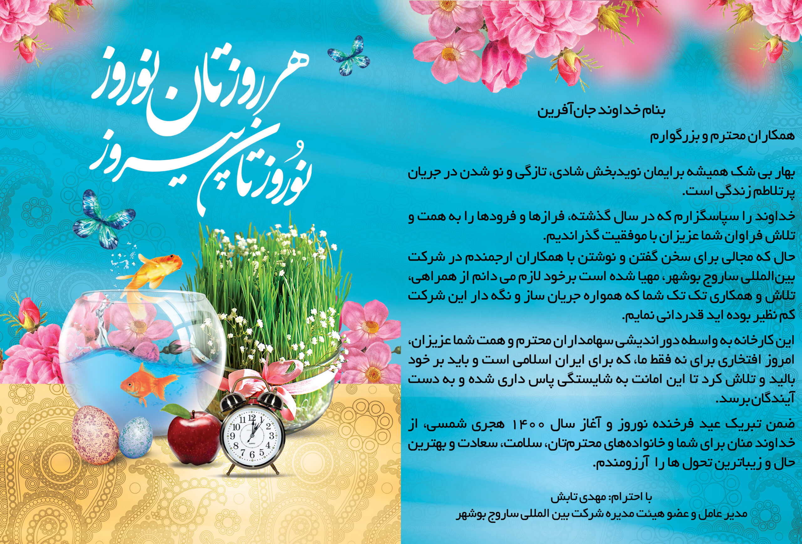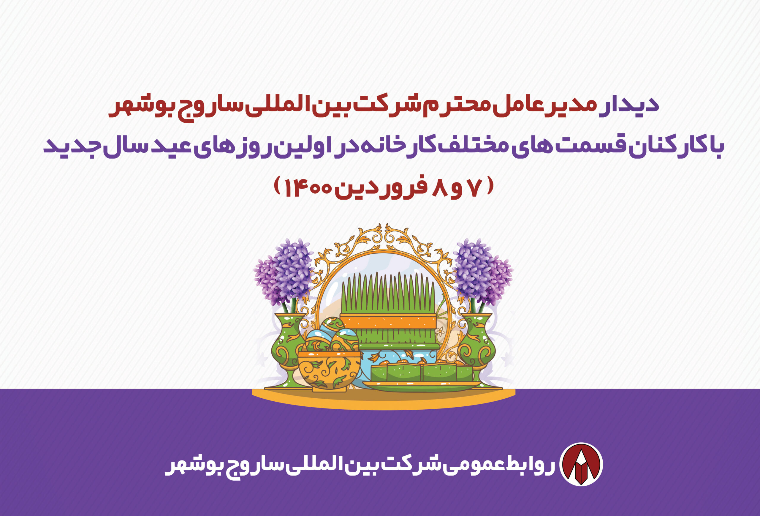 عیددیدنی ودیدار مدیرعامل محترم شرکت بین المللی ساروج بوشهر با کارکنان قسمت های مختلف کارخانه در اولین روزهای عید سال جدید ( 7 و 8 فروردین 1400)