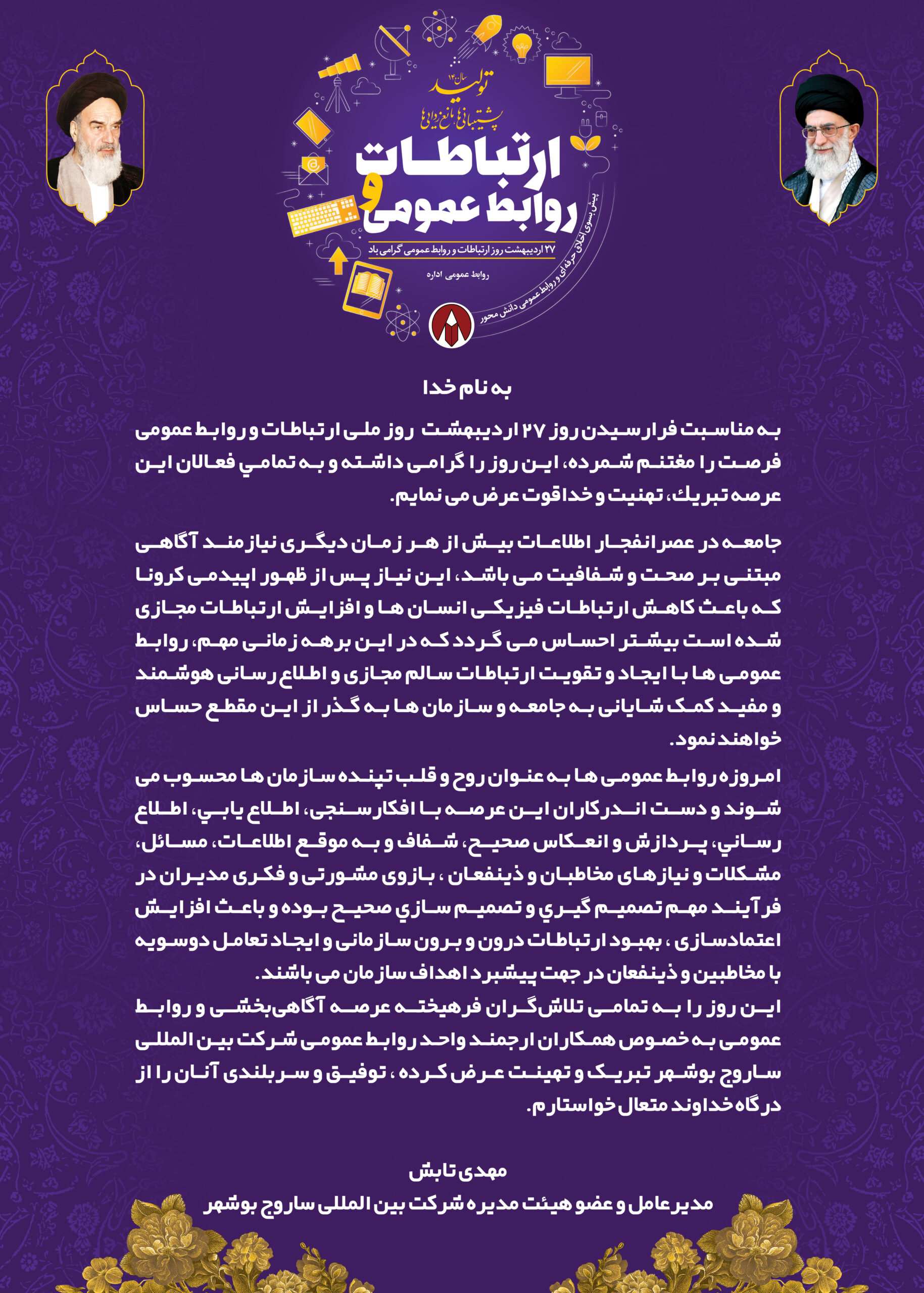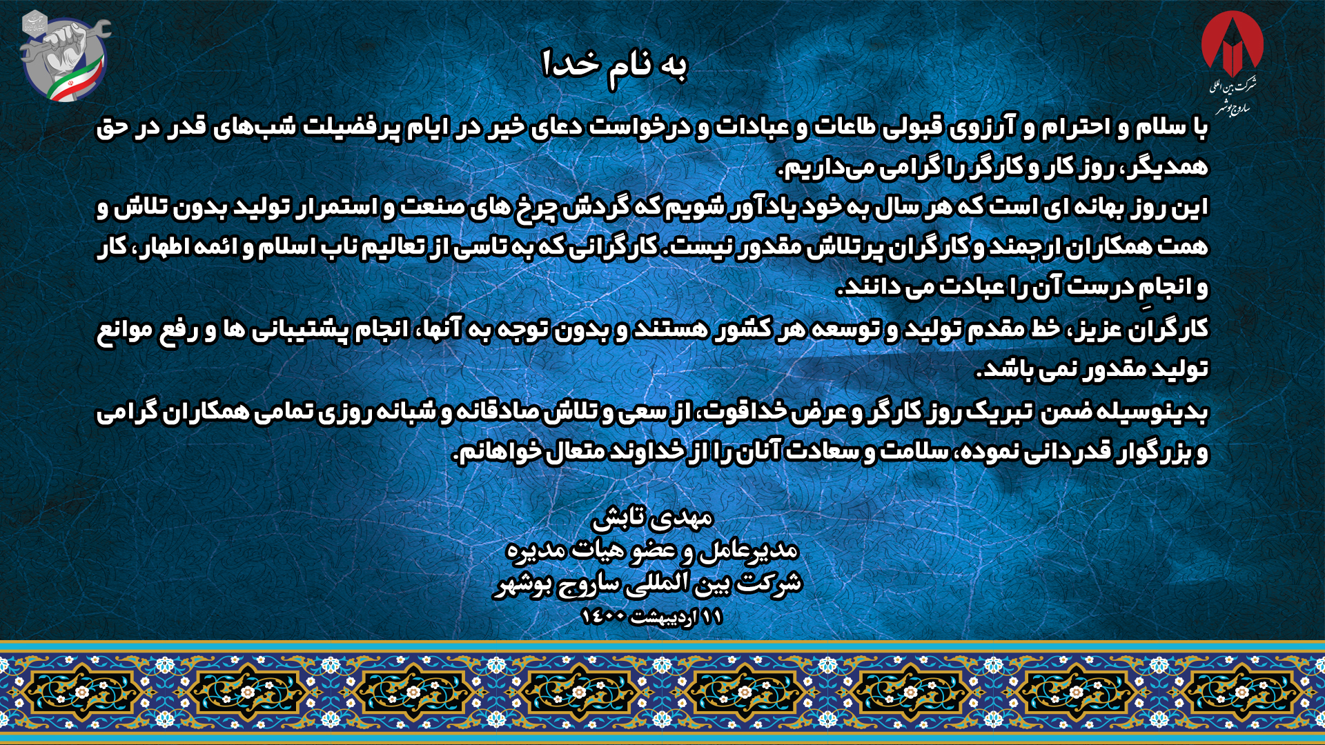 مراسم تقدیر از کارگران نمونه شرکت بین المللی ساروج بوشهر در روز شنبه مورخه 11 اردیبهشت ماه 1400 و همزمان با روز ...