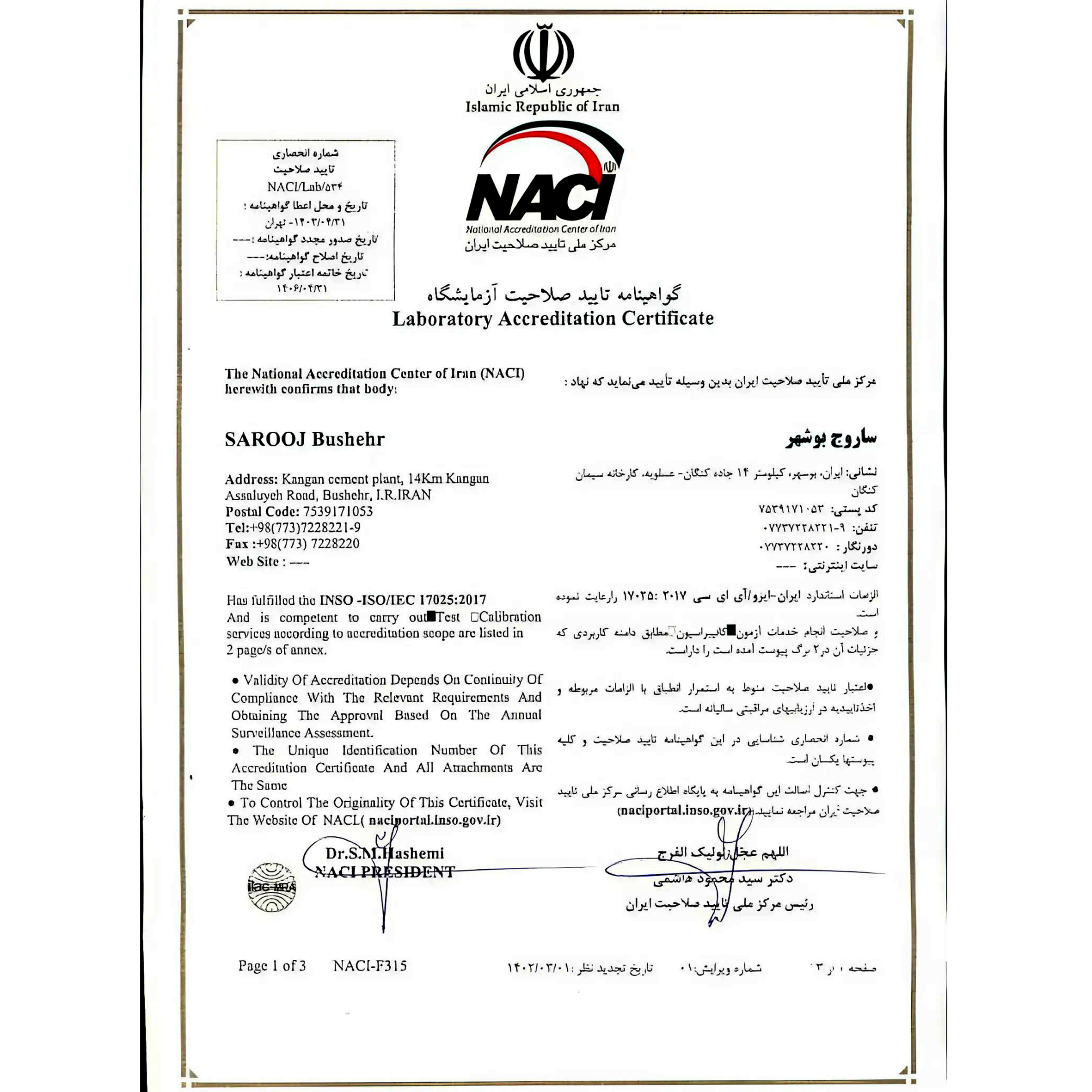 کارخانه سیمان کنگان موفق به دریافت گواهینامه بین المللی استاندارد تایید صلاحیت آزمایشگاه ” مدیریت کیفیت آزمایشگاه” (17025:2017 ) گردید.