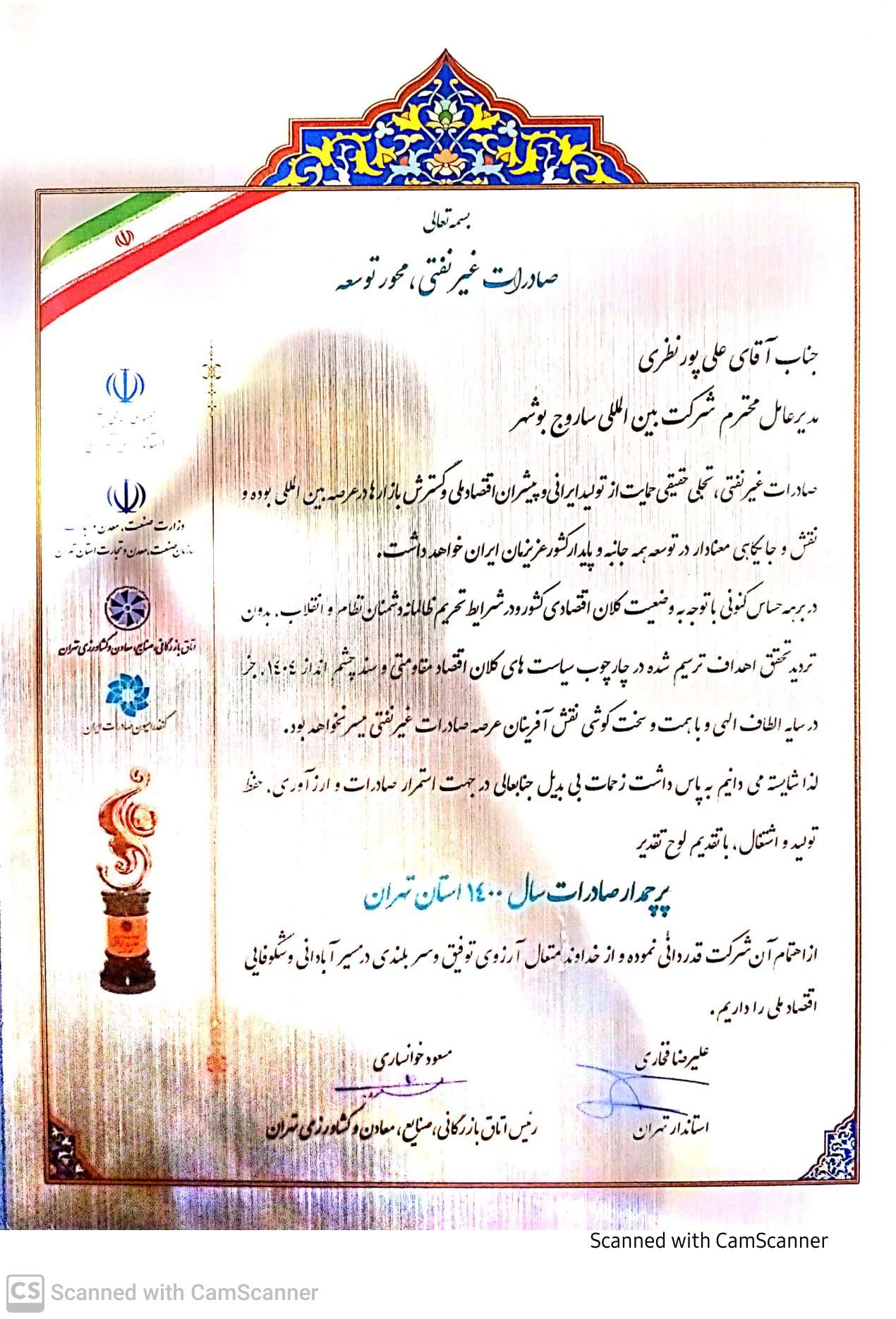 شرکت بین المللی ساروج بوشهر( سیمان کنگان) به عنوان پرچمدار صادرات سال ۱۴۰۰ استان تهران معرفی شد.