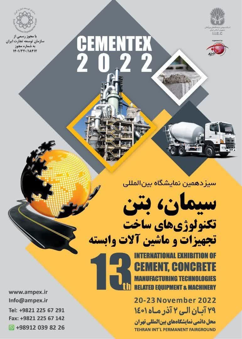 به گزارش روابط عمومی شرکت سرمایه گذاری وتوسعه صنایع سیمان ؛سیزدهمین دوره نمایشگاه بین المللی سیمان، بتن، تکنولوژی ساخت و ماشین آلات ...